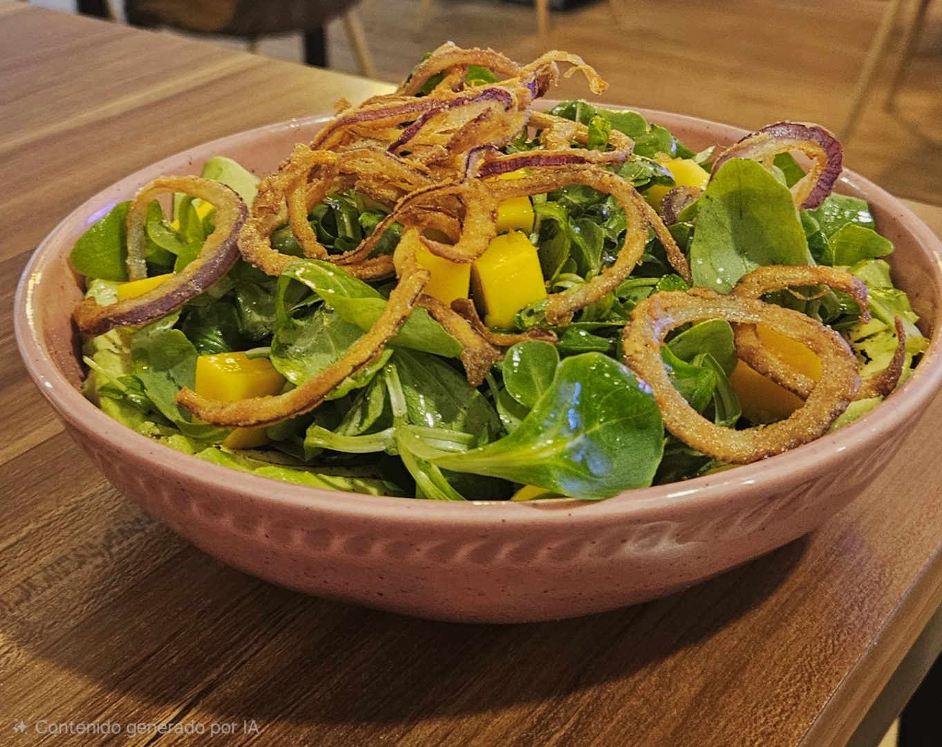 Aguacate, mango, hierbas frescas y cebolla frita con vinagreta de limón y jerez.